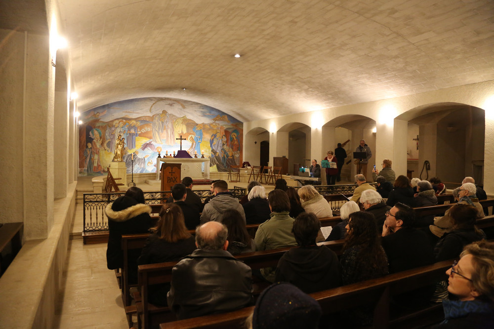 Après les conférences, tout le monde s’est réuni dans la crypte pour la messe et le premier scrutin des catéchumènes du doyenné. Voici quelques photos.