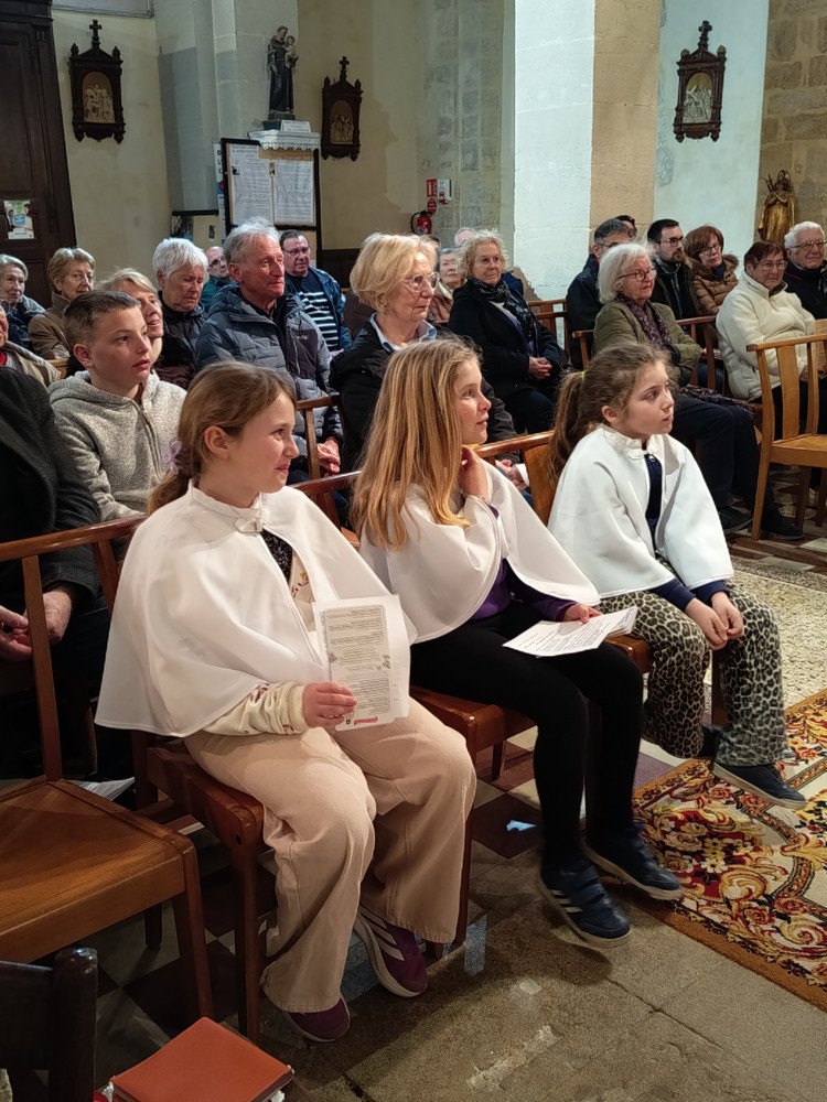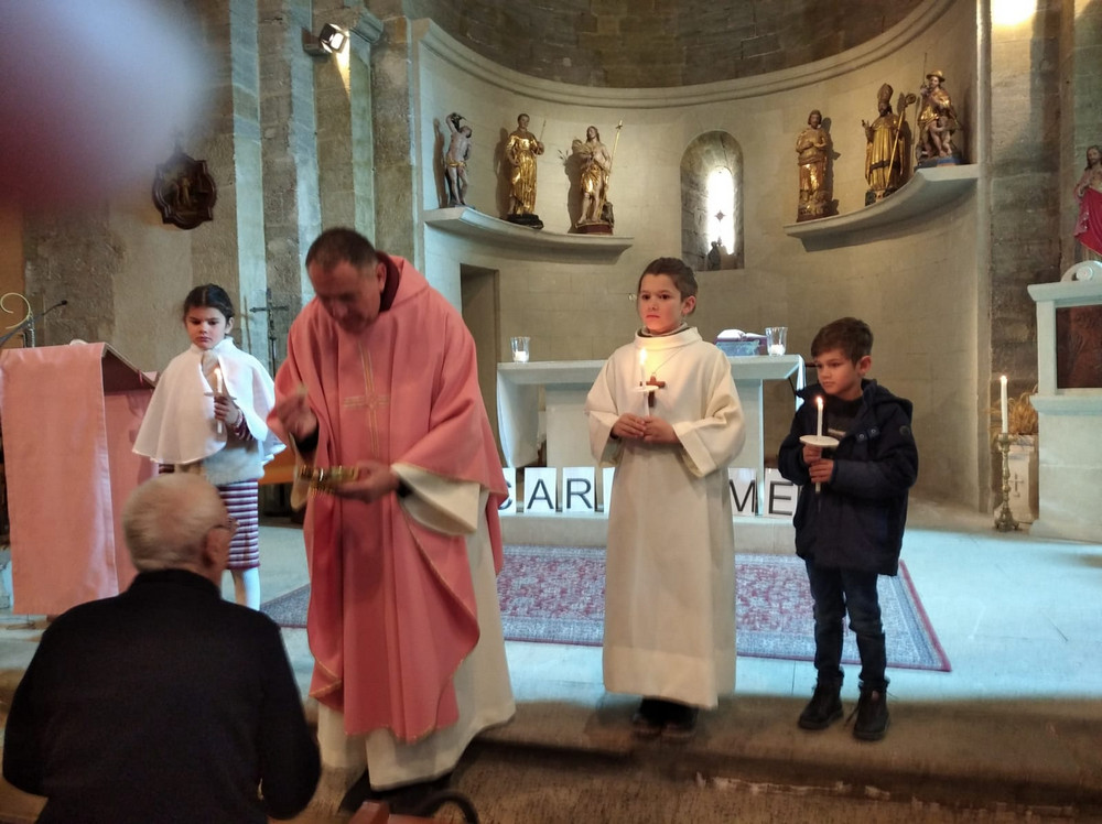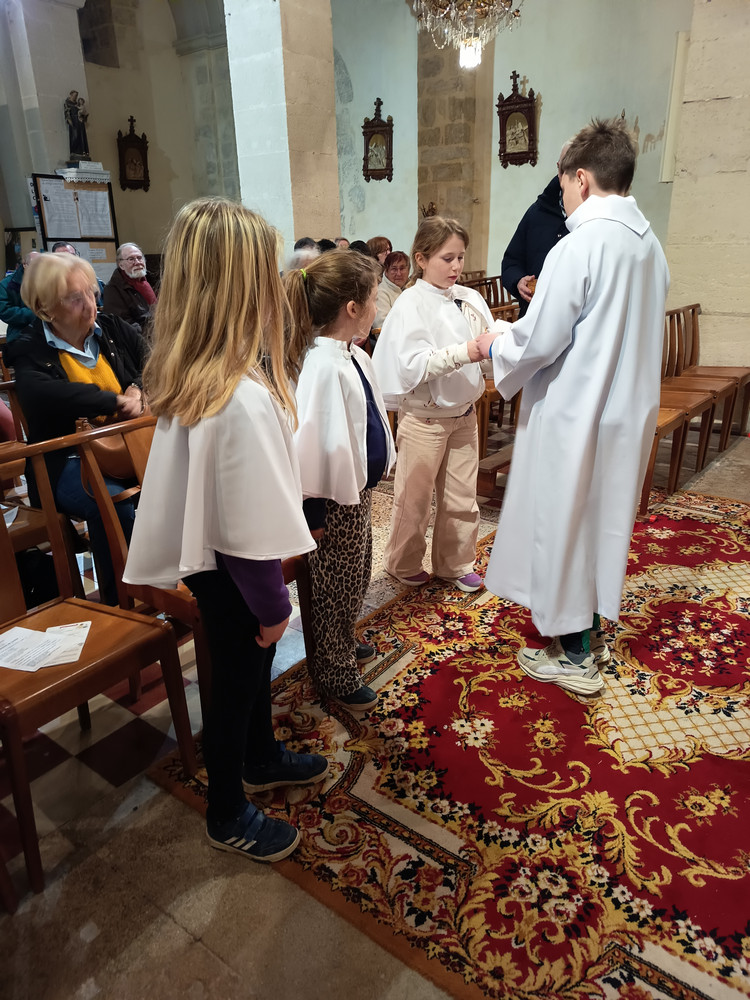 En ce 14 mars, la messe des familles a eu lieu à Jonquerettes pour les enfants du catéchisme de Jonquerettes et de Châteauneuf de Gadagne, mais ceux qui n'ont pas pu y venir ont participé à la messe du lendemain à 9h30.
