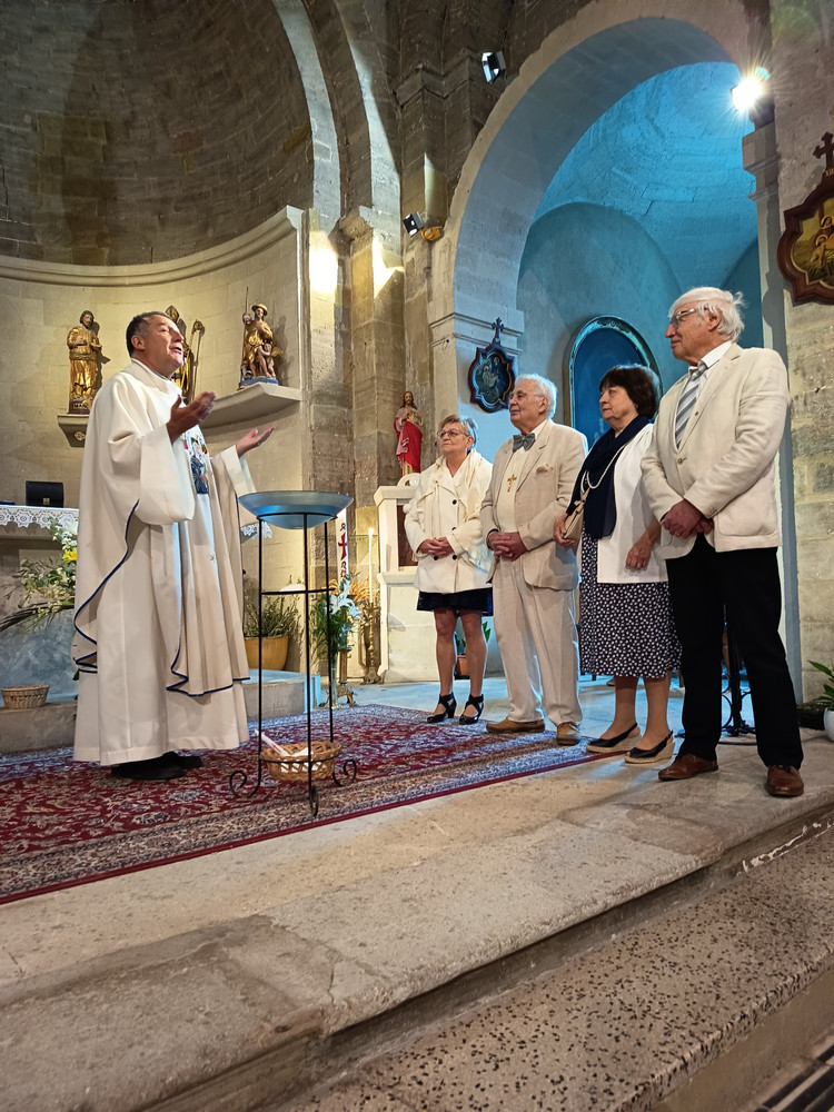 Voici quelques photos prises au cours de la messe du dimanche 12 avril 2026 à l’église saint Jean Baptiste à Châteauneuf de Gadagne, au cours de laquelle nous avons assisté au baptême de Jean, 80 ans, aux 70 ans de mariage de Monique et Jean-François, ainsi qu'aux 60 ans de mariage de Nicole et Gilles.
